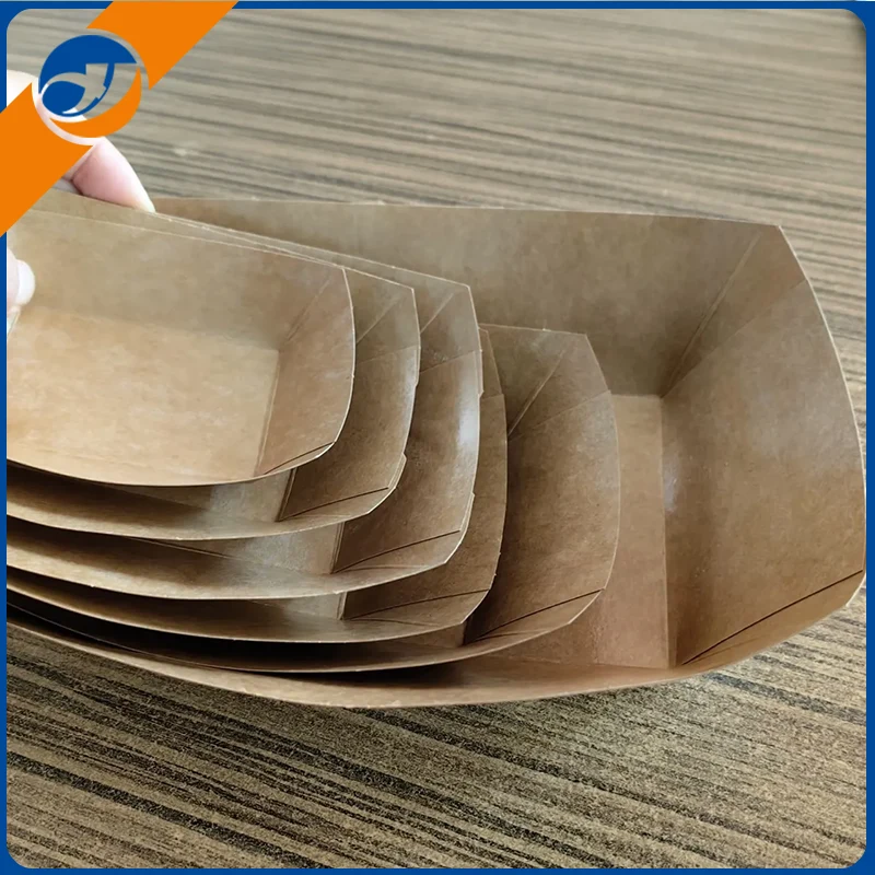 Ang Fried Chicken Boat Box ay nakatayo kasama ang natatanging hitsura ng hugis ng bangka, na inspirasyon ng hugis ng mga tradisyunal na bangka. Ang Zemeijia ay maraming taon ng karanasan sa propesyonal na paggawa ng mga kahon ng papel. Ang disenyo ng Fried Chicken Box Box ay hindi lamang nagpapabuti sa katatagan ng packaging at binabawasan ang pag -splash ng pagkain sa panahon ng transportasyon, ngunit nagbibigay din ng produkto ng visual na apela.
