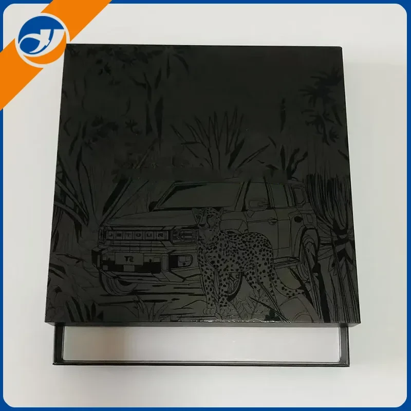 Ang matte na embossing na itim na kahon ng regalo ay ginawa mula sa espesyalidad na papel at hardboard, na nag-aalok ng isang pinong hawakan habang lumalaban sa pagsusuot at scratch-proof. Ang ibabaw nito ay lumalaban sa mga fingerprint, na nagha-highlight ng isang premium na texture. Nagtatampok ang takip ng 3D embossing na may mga pattern ng jungle, leopard, at off-road na sasakyan, na kinumpleto ng mga logo ng brand ng gold foil. Ang klasikong black-and-gold color scheme ay nagpapalabas ng karangyaan na may natatanging layering. Dinisenyo sa isang patag na istraktura ng takip ng langit-at-lupa, ang kahon ay nagbubukas at nagsasara nang maayos, nagpapanatili ng isang matatag na hugis nang walang deformation, at nagtatampok ng isang patag na espasyo sa loob na perpekto para sa pag-iimbak ng mga slim luxury item. Sa matte na embossing na black gift box na "paggalugad" na tema, pinagsasama ng disenyo ang panlabas na pag-akit sa pinong kagandahan, na epektibong nagpapalakas ng imahe ng tatak at memorability. Bukod pa rito, sinusuportahan ng kahon ng regalo ang ganap na pag-customize, kabilang ang mga naka-embossed na pattern at gintong foil na text, upang madaling matugunan ang magkakaibang mga personalized na pangangailangan sa packaging.