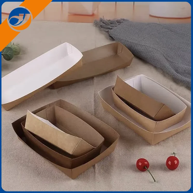 May inspirasyon ng natatanging hugis ng isang bangka, isinasama ng tray ng papel ng bangka ang naka -streamline na disenyo ng mga tradisyunal na bangka sa modernong tableware upang lumikha ng isang malikhaing at praktikal na carrier ng pagkain. Ang tray ng papel ng bangka ay hindi lamang nagbibigay ng produkto ng visual na apela, ngunit nagbibigay din ng katatagan sa panahon ng transportasyon at paglalagay, binabawasan ang pag -slide ng pagkain o pag -iwas, na ginagawang mas kasiya -siya ang karanasan sa kainan.